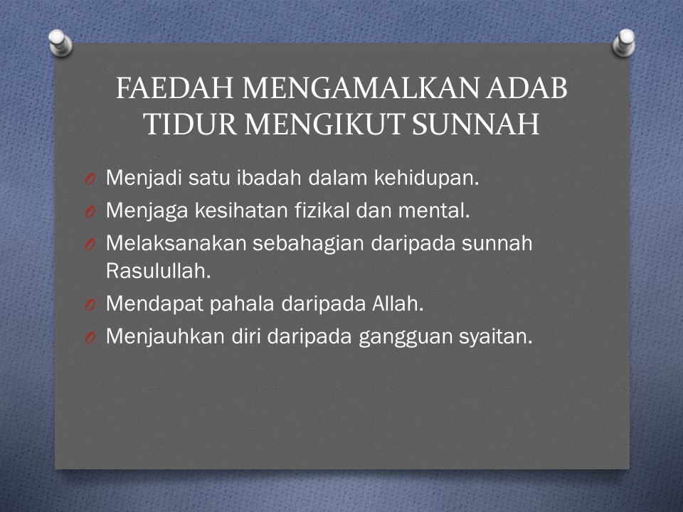 Jaga Adab Tidurmu https://www.utusan.com.my/rencana/forum/qailulah-tingkat-produktiviti-1.371387 QAILULAH TINGKATKAN PRODUKTIVITI https://www.youtube.com/watch?v=07DewzymH0U https://archive.org/stream/ADABETIKAMUSLIM/ADAB%20TIDUR%20dan%20BERMIMPI#mode/2up ADAB TIDUR DAN BERMIMPI https://www.google.com/url?sa=i&source=images&cd=&ved=2ahUKEwjE9ITCyqLkAhUMaI8KHROkDSUQjRx6BAgBEAQ&url=https%3A%2F%2Fwww.gomuslim.co.id%2Fread%2Fmuslim_lifestyle%2F2019%2F06%2F26%2F13011%2F-p-sesuai-sunnah-nabi-ini-adab-sebelum-tidur-p-.html&psig=AOvVaw0sBWBRmB6tHpP8xW2h3GxP&ust=1566979169967432 https://www.sinarharian.com.my/article/24332/SISIPAN/Sinar-Islam/SEBELUM-tidur-kita-digalakkan-untuk-mengambil-wuduk KELEBIHAN BERWUDUK SEBELUM TIDUR https://www.google.com/imgres?imgurl=https%3A%2F%2Fkarangkraf-asset-files.s3-ap-southeast-1.amazonaws.com%2FMaskulin%2F19c8292bacd6db24197b56dcb5d63b95%2F2.jpg&imgrefurl=https%3A%2F%2Fwww.maskulin.com.my%2Ftidur-mengiring-ke-kanan-amalan-sunnah-ini-9-manfaat-besarnya-untuk-kesihatan%2F&docid=JmZJDTGqSpIVUM&tbnid=4hxhNaGzBK0nNM%3A&vet=10ahUKEwjtjdzTzqLkAhURXn0KHU7aC7cQMwifAShPME8..i&w=643&h=330&bih=371&biw=931&q=kelebihan%20tidur%20mengikut%20sunnah&ved=0ahUKEwjtjdzTzqLkAhURXn0KHU7aC7cQMwifAShPME8&iact=mrc&uact=8 Click to access TAZKIRAH%2025%20191105%20Adab%20Sebelum%20Tidur.pdf TAZKIRAH ADAB SEBELUM TIDUR Share this: Share on X (Opens in new window) X Share on Facebook (Opens in new window) Facebook Like Loading...