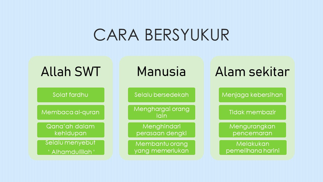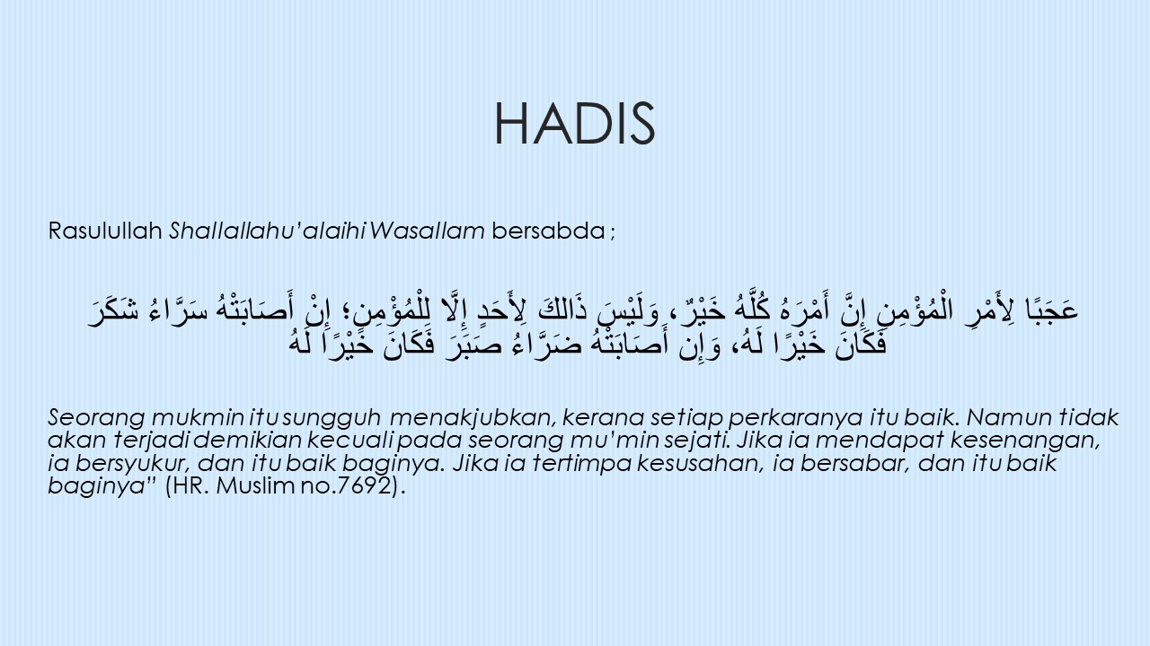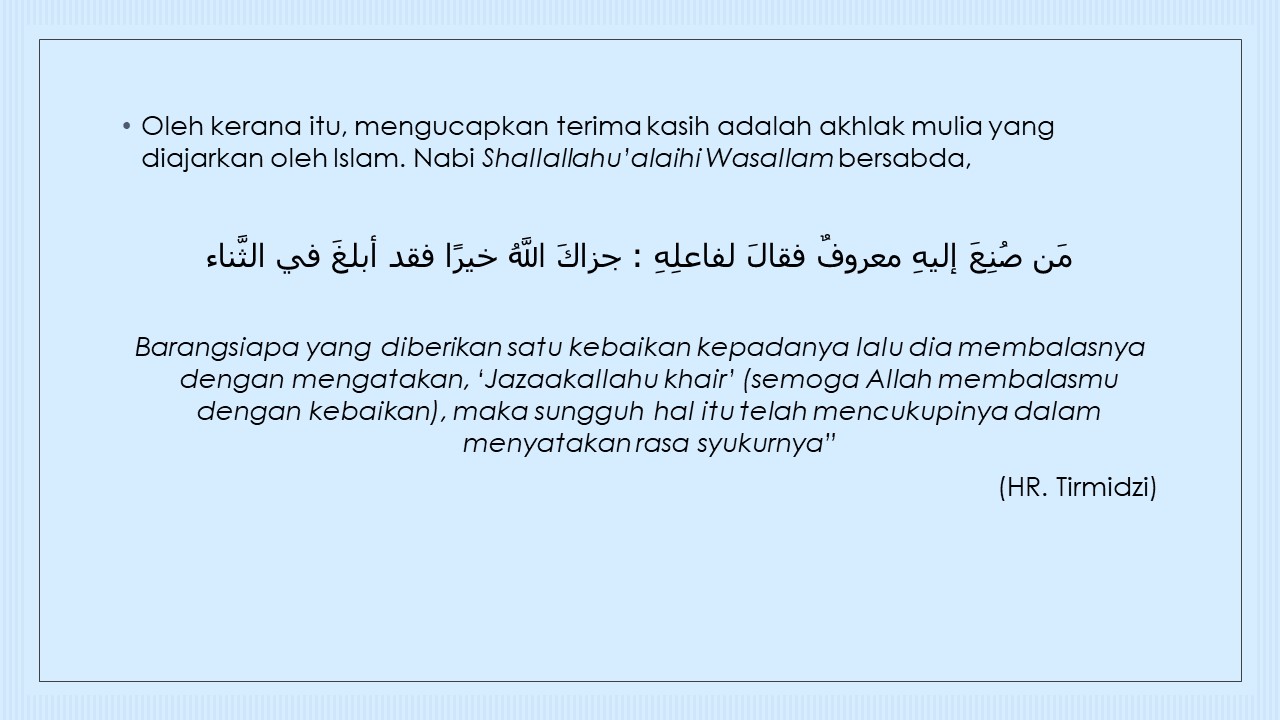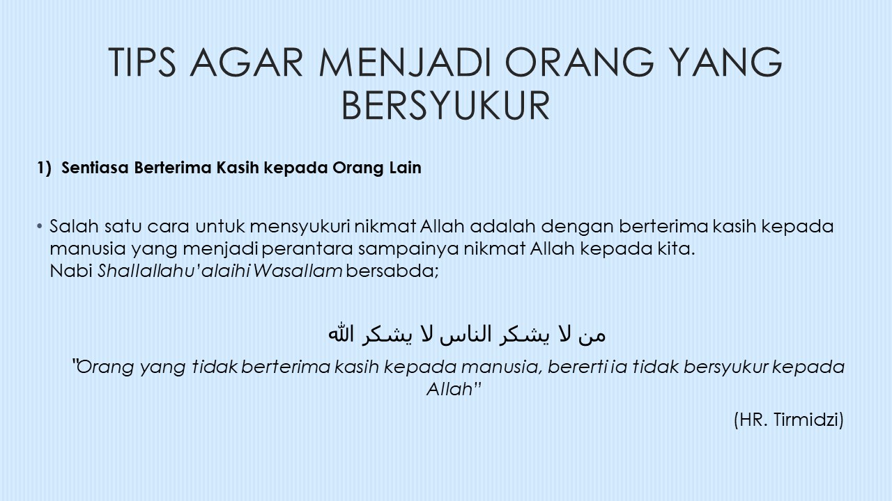 ” Bersyukur bukan hanya sebatas ucapan Alhamdulillah. Bersyukur adalah sikap. Itu adalah gaya hidup. Itu adalah cara berfikir. Teruslah bersyukur.”